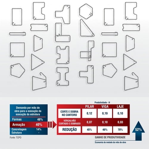 NO SERVIÇO DE CORTE E DOBRA a ferragem é feita sob medida para o cliente, através de um sistema automatizado onde todas estruturas são pré-fabricadas, encurtando o tempo da empreitada e conciliando menor custo, praticidade, rapidez e segurança. Com isso, o cliente adquire de maneira exata todos os elementos estruturais que a sua obra necessita, evitando compras superiores às necessárias, eliminando todas as perdas provenientes de pontas, extravio de peças, estoques na obra e espaço para montagem.